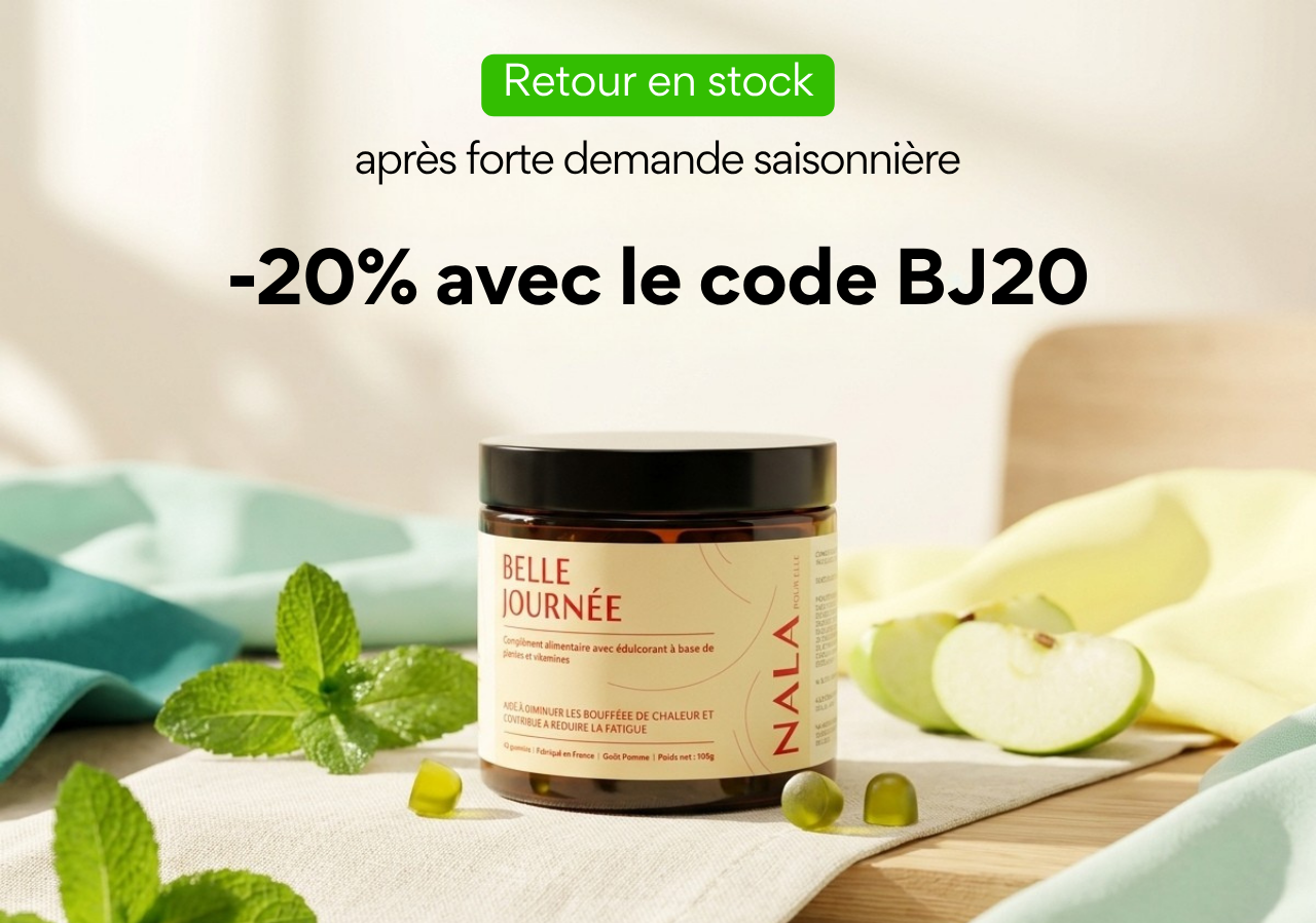 Nous le savons toutes, les bouffées de chaleur sont souvent pénibles à vivre… Avec Nala, il existe enfin une alternative naturelle pour diminuer les effets de la périménopause. En plus, c'est délicieux ! Nala est donc devenue ma nouvelle routine.