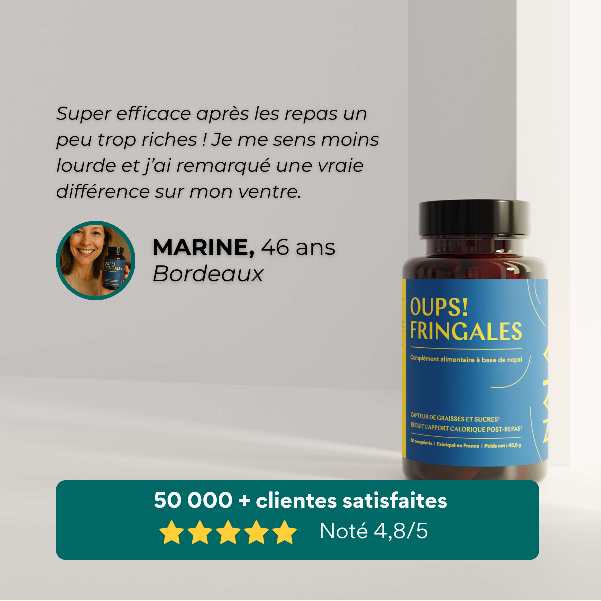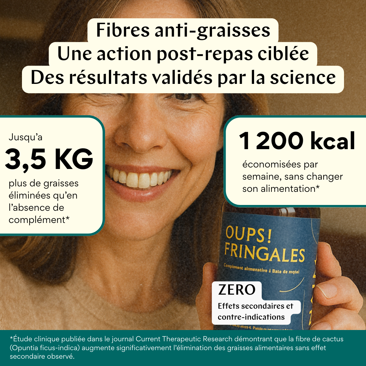 Ces résultats confirment l’efficacité de Oups! Fringales comme solution naturelle, sûre et performante pour réduire l’impact calorique des repas et mieux contrôler les fringales.