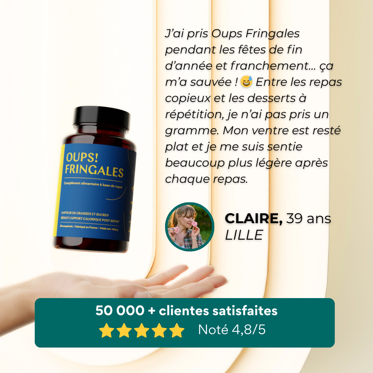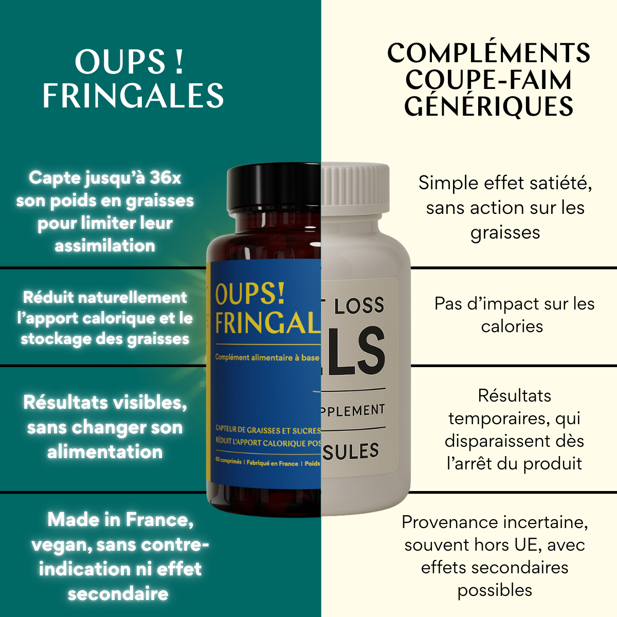 Oups! Fringales repose sur un principe simple et redoutablement efficace : un seul actif, 100 % naturel, reconnu pour son action directe sur l’élimination des graisses alimentaires.